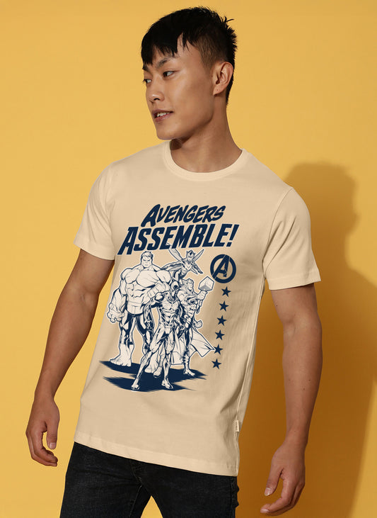Avengers Assemble Brown Regular Printed T-Shirt