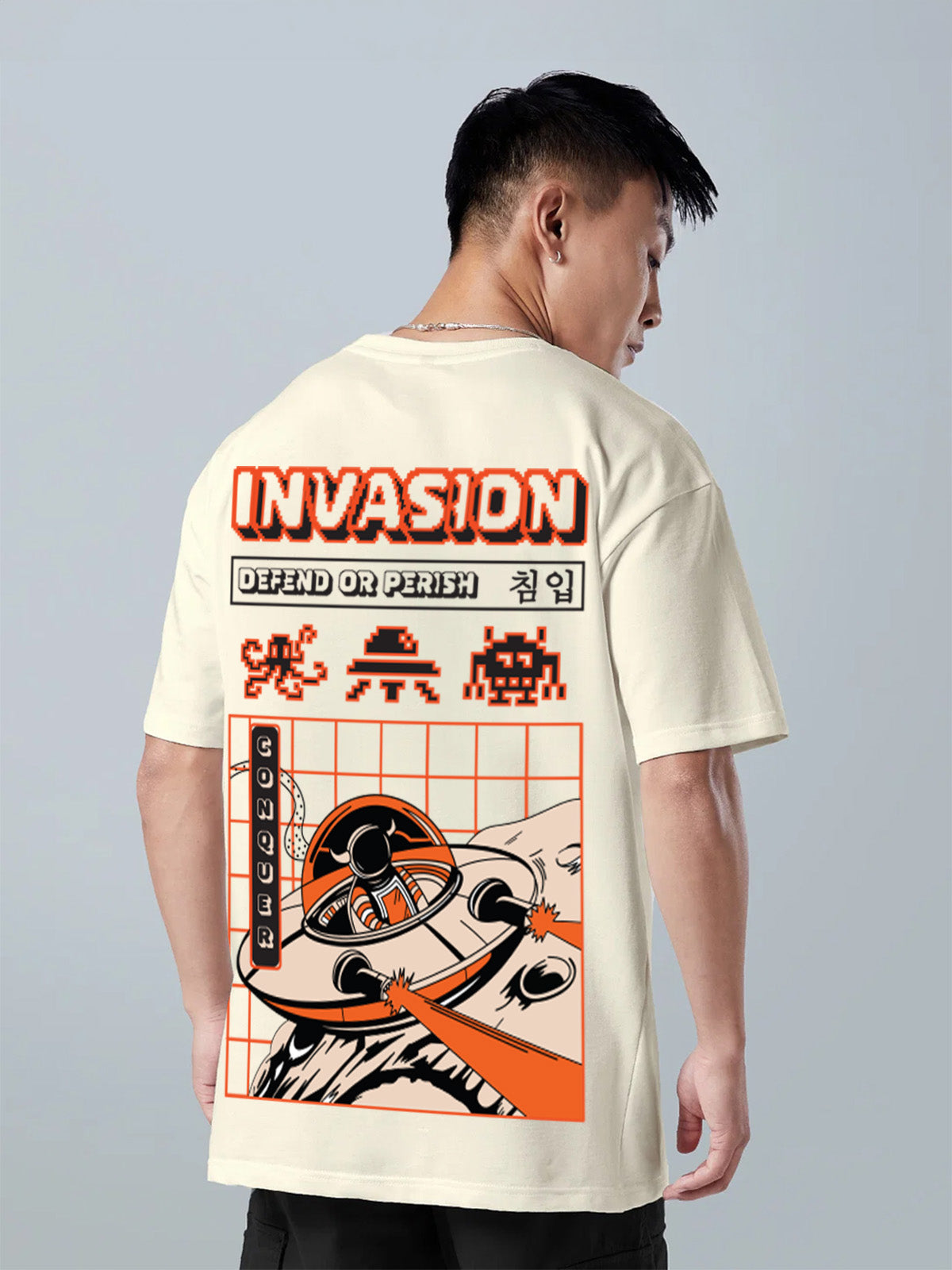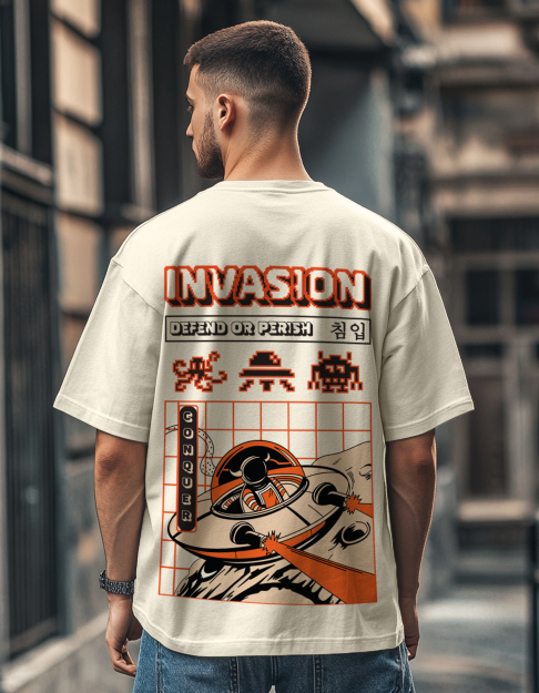 Invasion Cream Oversize Printed Tshirt