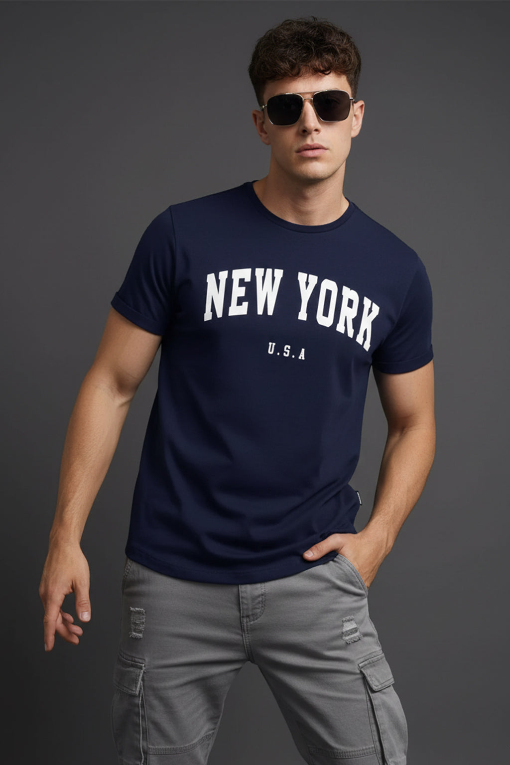 New York Blue Regular Printed T-Shirt