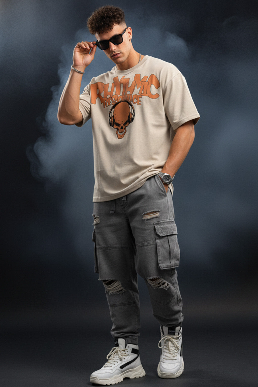 Rtythmic Resources Cream Oversize Printed Tshirt