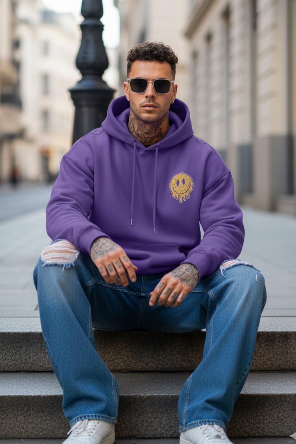 Smile Blue Printed Hoodie