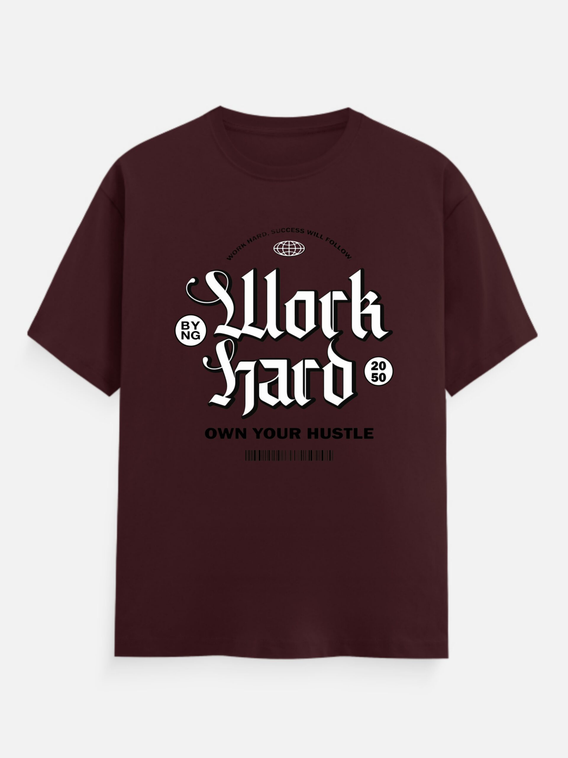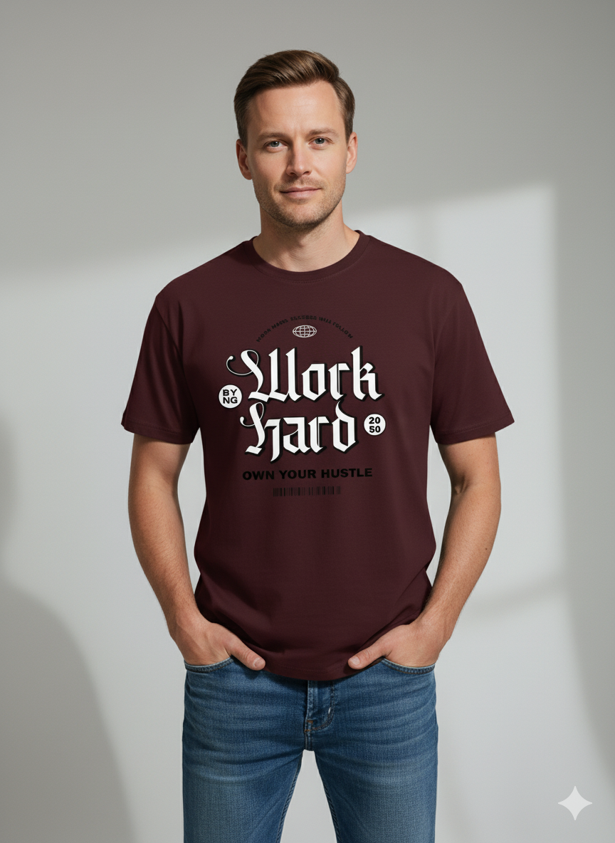 Work Hard Maroon Regular Printed T-Shirt